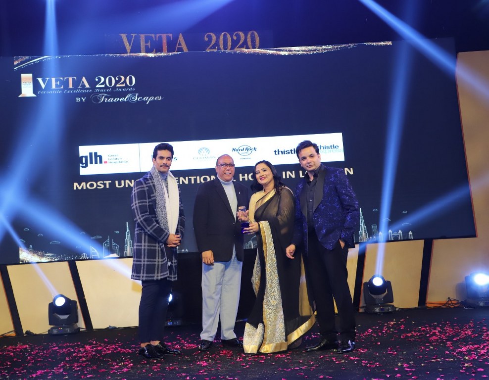 Travelscapes organized the 3rd Edition of The Versatile Excellence Travel Awards in New Delhi at the Imperial Hotel on 7th of January’ 2020, wherein The Hard Rock Hotel London won an award for “The most unconventional hotel in London”. The award was presented by Bollywood actor & model Angad Bedi, and it was received by Mamta – CWW India, on behalf of The Hard Rock Hotel.