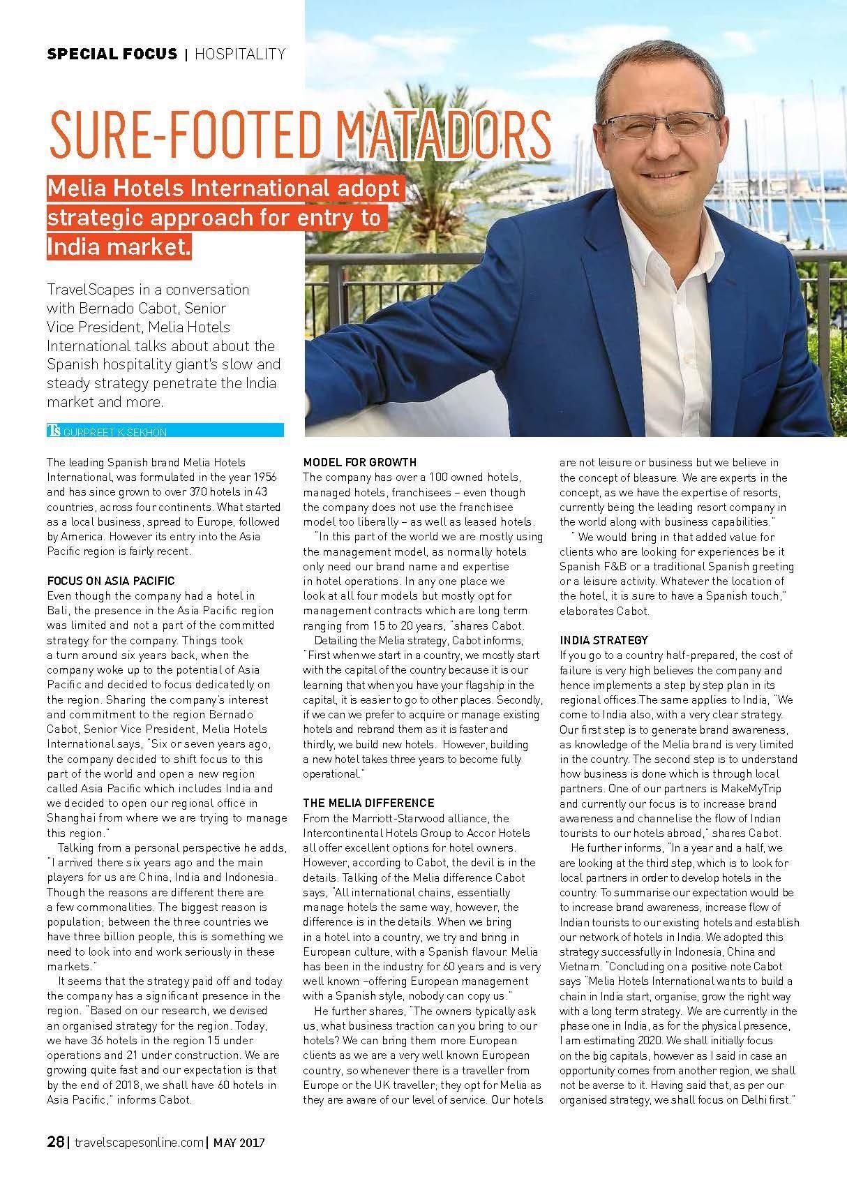 SURE-FOOTED MATADORS – Melia Hotels International adopts strategic approach for entry to India market